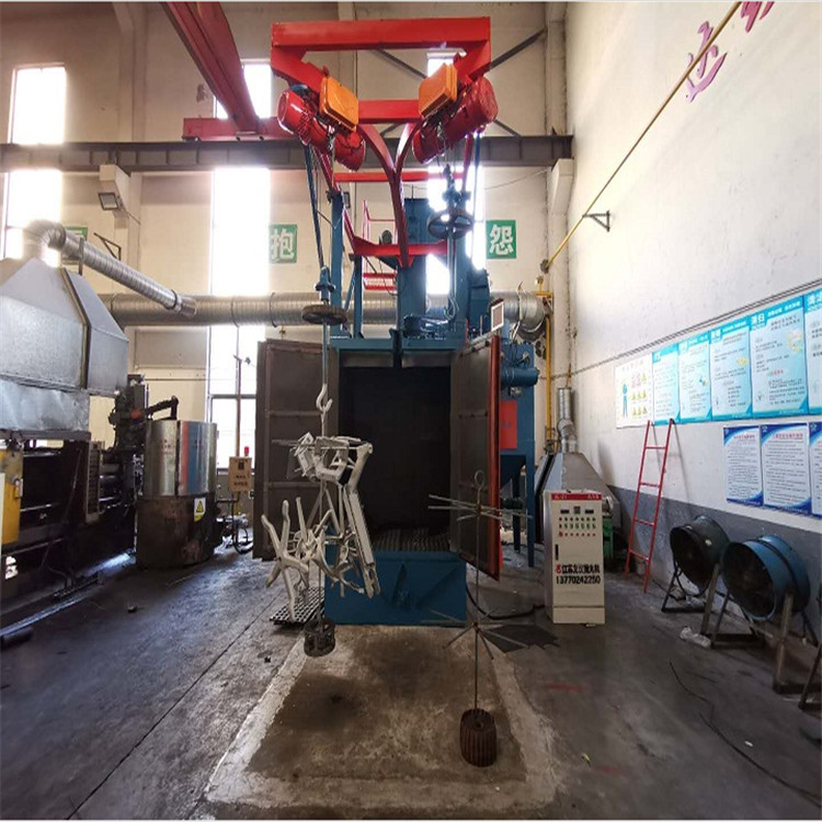 上图是我公司为浙江嘉兴某压铸有限公司定制的铝压件双吊钩式抛丸机交付使用现场!